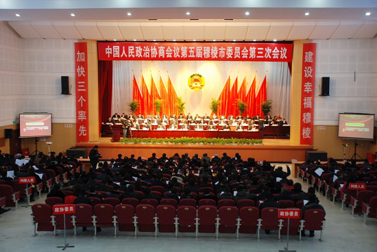 1月11日,政协第五届穆棱市委员会第三次会议在我市烟厂文化馆隆重召开,来自全市各行各业、各条战线的160名政协委员参加会议,认真履行人民政协政治协商、民主监督、参政议政的职能。上午9:30,大会在雄壮的国歌声中开幕。