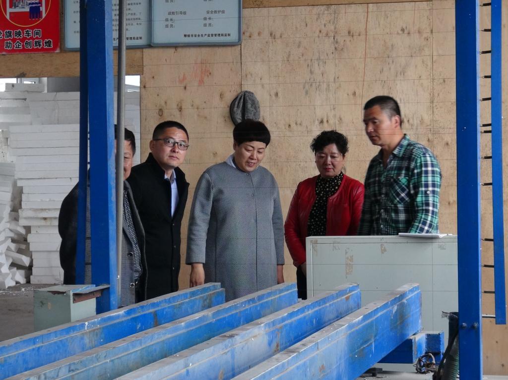 在东福建材有限公司,王贵斌与包扶单位市供销联社详细询问企业发展现状和存在问题,并走进生产车间,详细了解企业主营产品EPS建筑外墙保温板的性能、防火等级、加工流程。