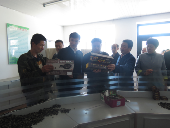 调研组对悬羊村致强食用菌产业园区内的养菌室、菌包制作车间、挂袋大棚和成品展示厅进行了链条式参观。通过技术人员的讲解,调研组成员对木耳菌的菌种、采集培育、菌包制作加工以及黑木耳的种植采摘种植技术环节及注意事项有了全面系统了解。